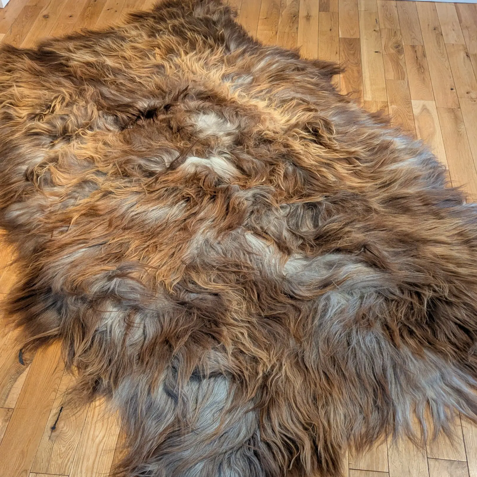 Icelandic Sheepskin Rug Natural Rusty Grey Quad