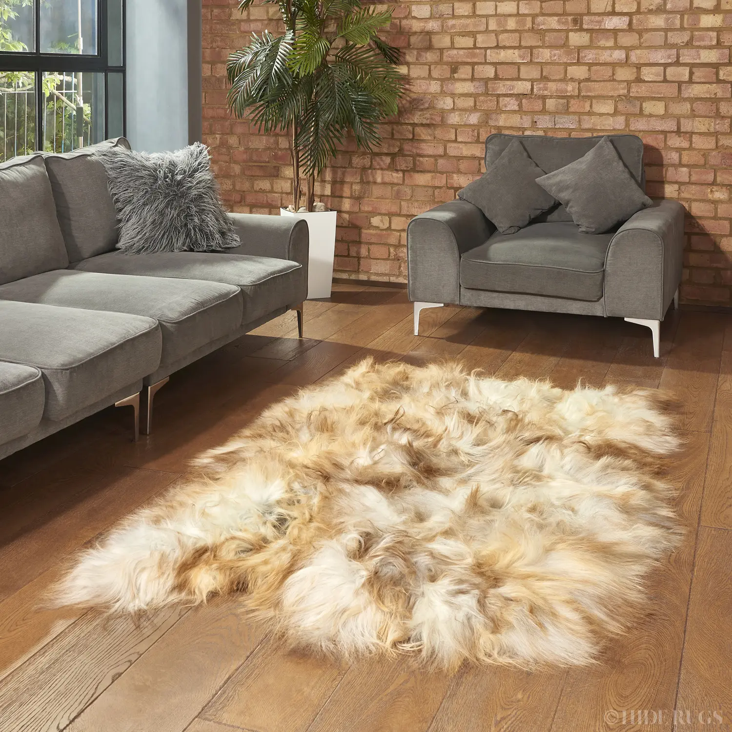 Icelandic Sheepskin Rug Natural Rusty Grey Quad