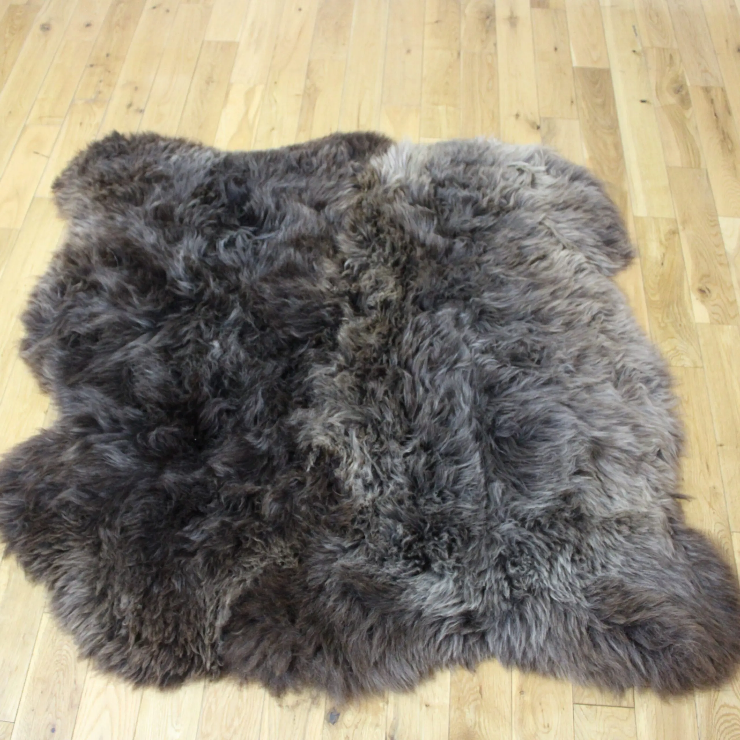 A gorgeous mix of natural brown and a grey. Measures approx. 110 cm x 115 cm. Dense, long wool pile, perfect for a living or bedroom space. This is the exact unique hide that you will receive.
