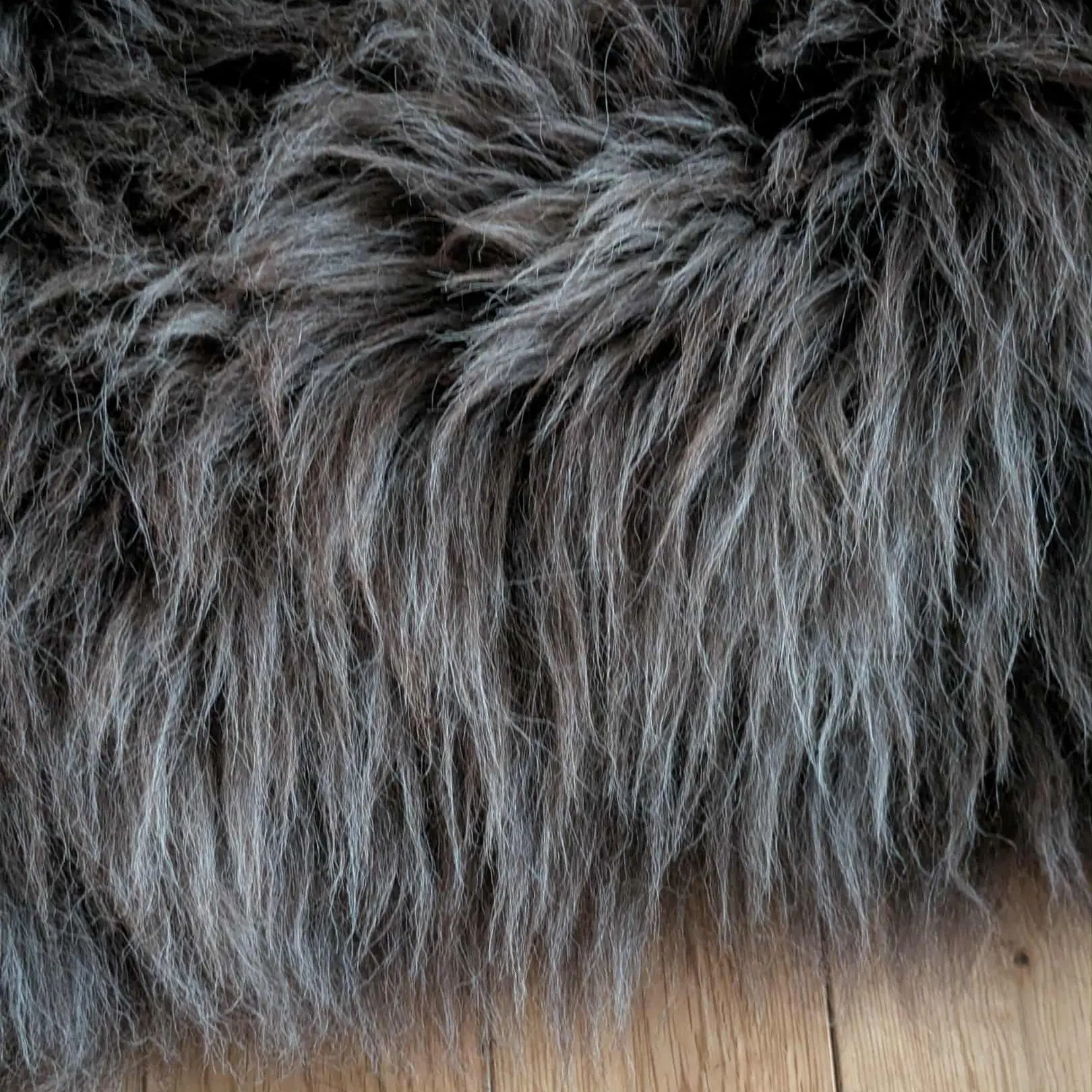 A gorgeous mix of natural Brown, Cream and Grey colours. Measures approx. 175 cm x 130cm. Long wool and super soft pile, perfect for a living or bedroom space.
