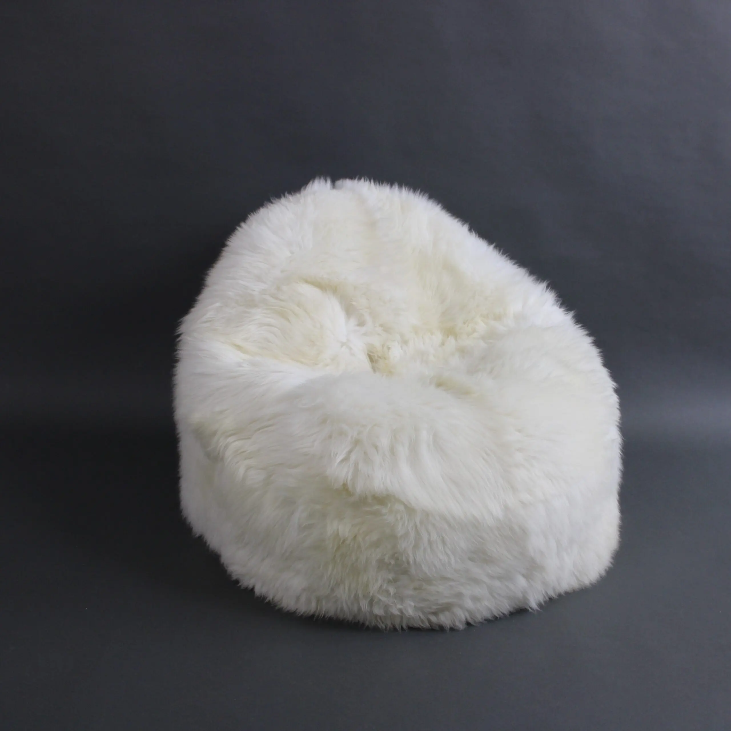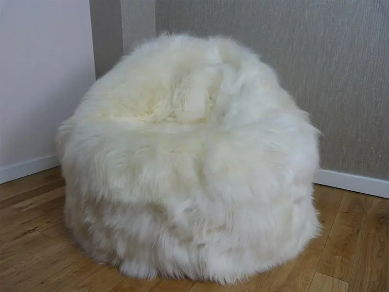 Sheepskin Beanbag filled with Styrofoam filler and foam beads.