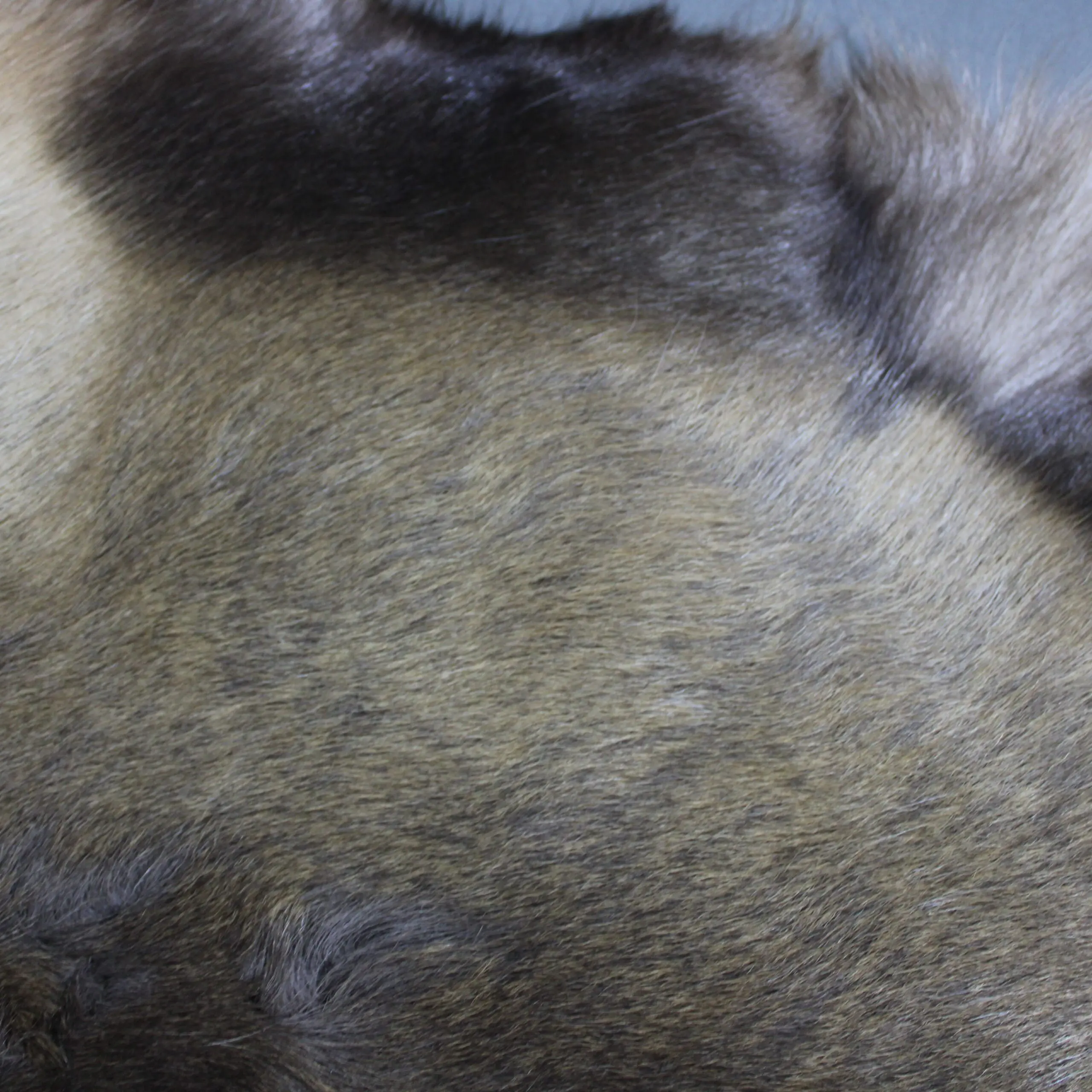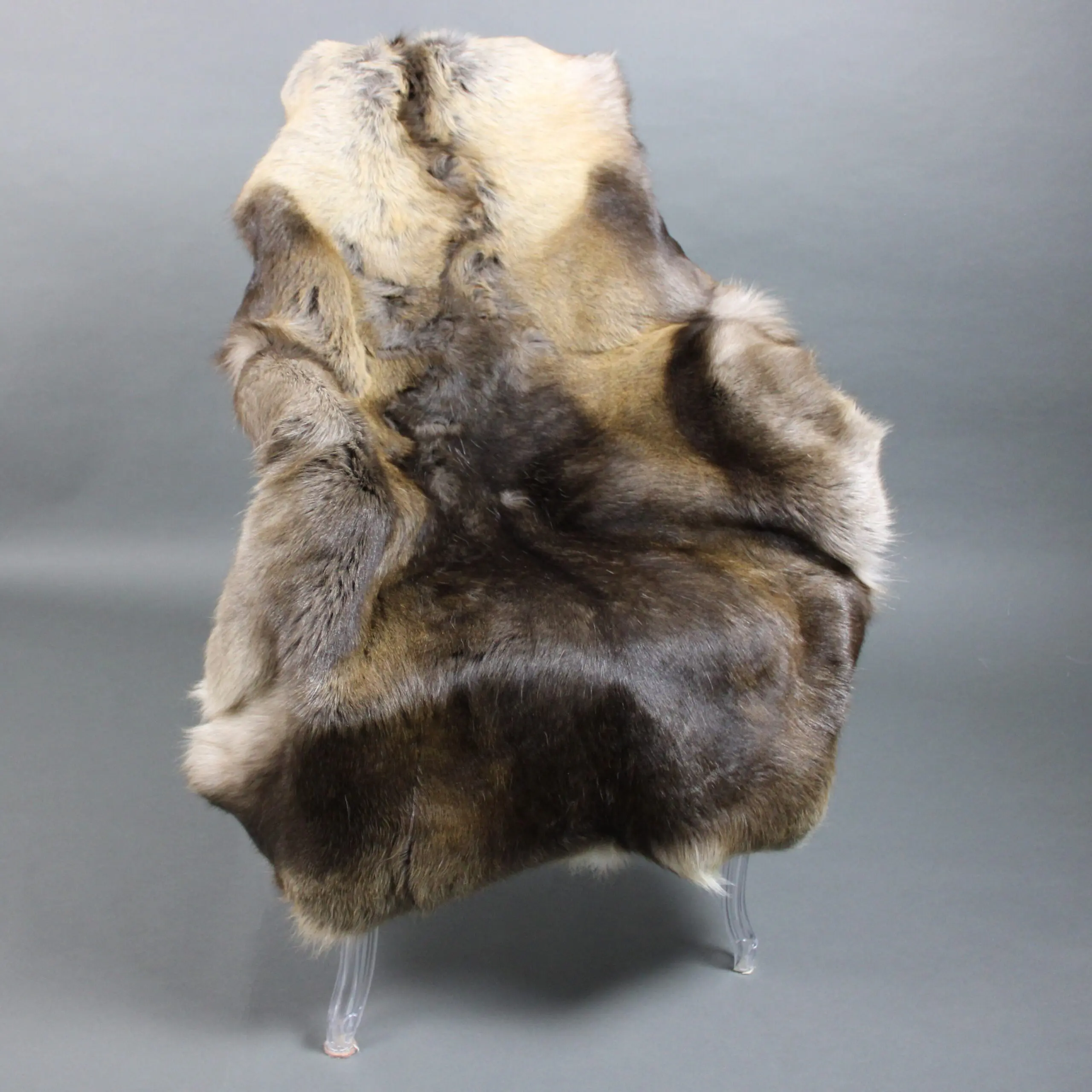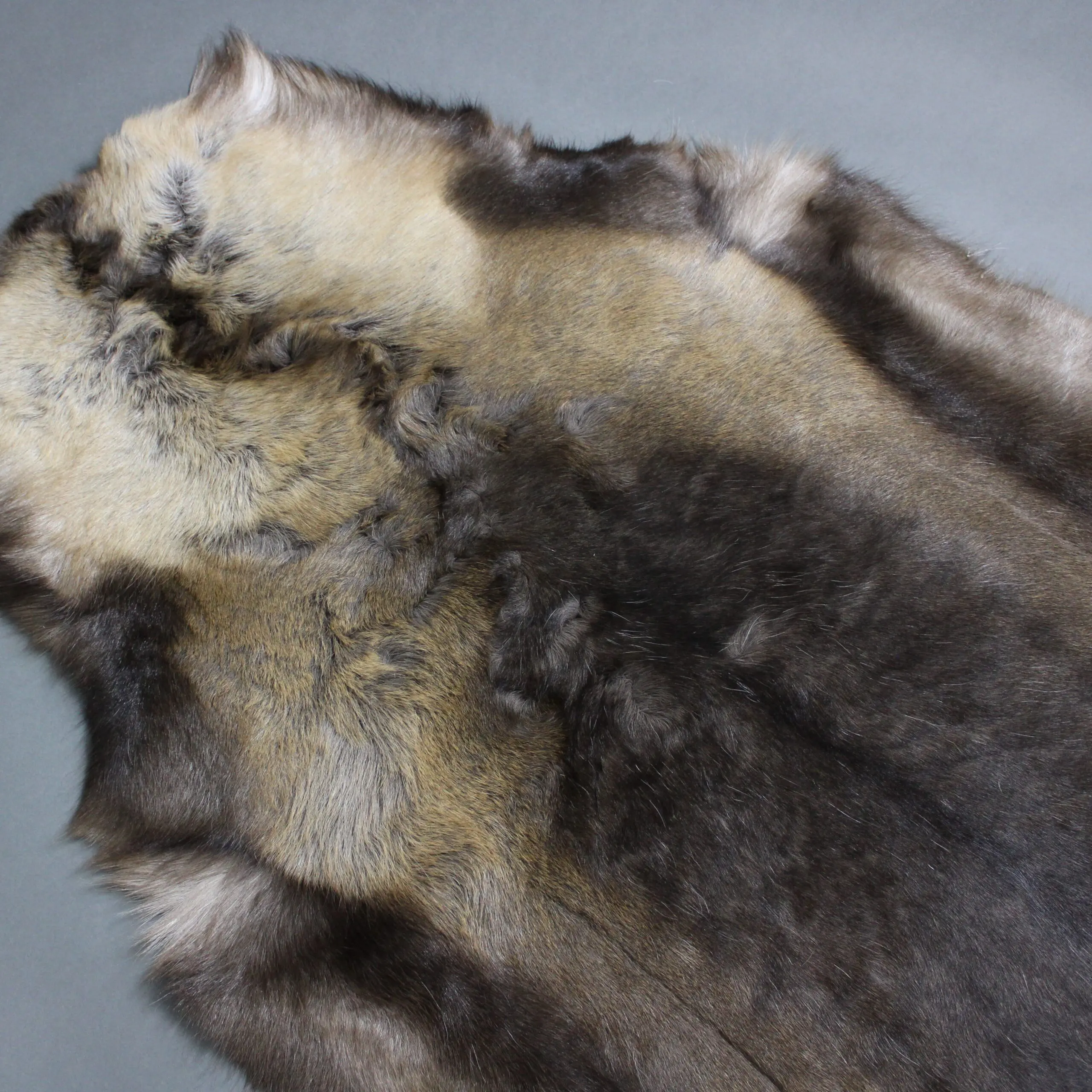The blend of white, grey, taupe, beige and brown markings vary depending on the season and age of the animal so each skin is individual and unique.